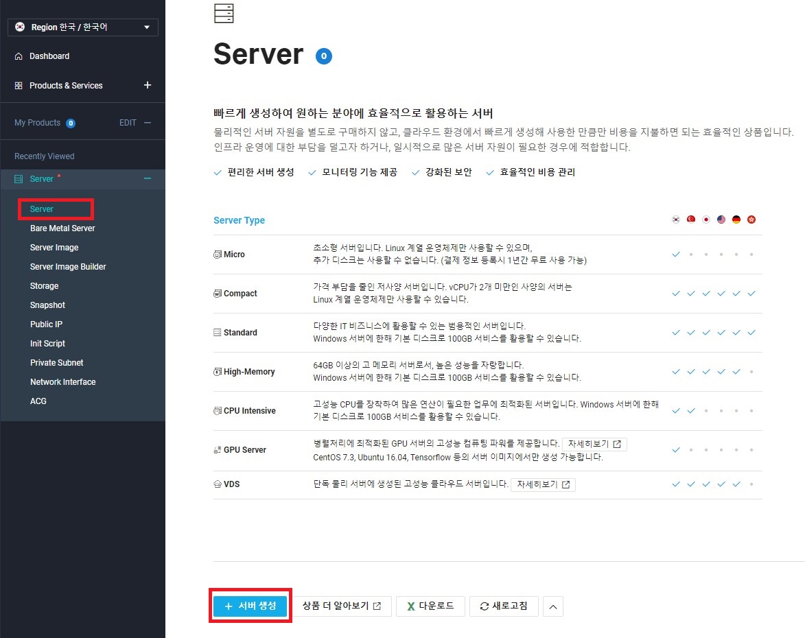 네이버 클라우드 플랫폼 계정을 생성한 뒤 해당 탭에서 서버를 생성 할 수 있다.