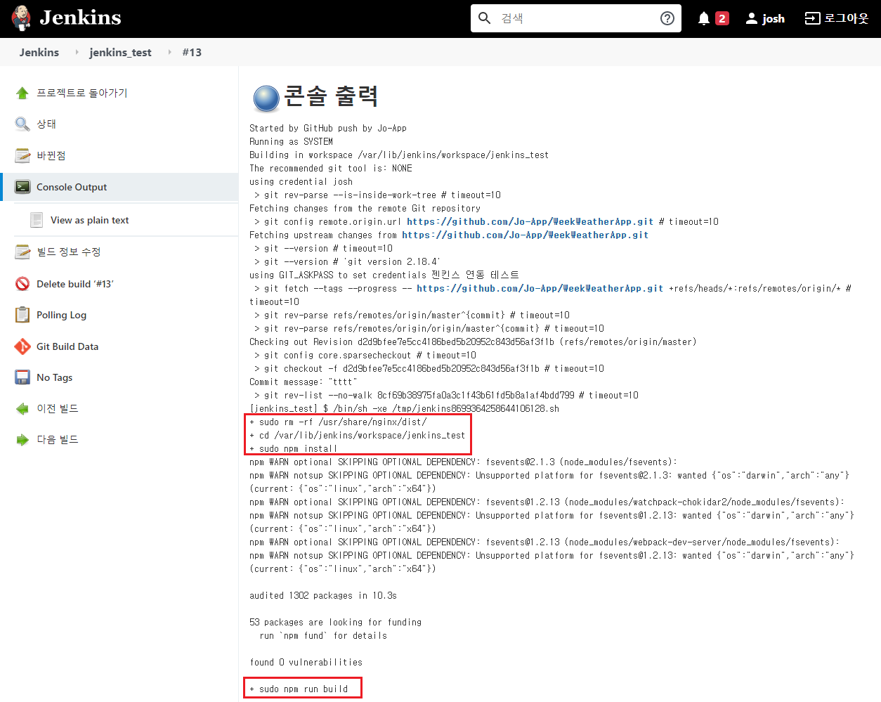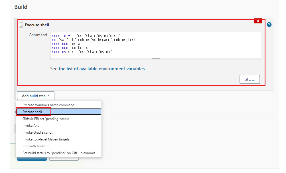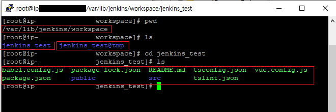 cd /var/lib/jenkins/workspace/jenkins_test <-- 2. 젠킨스 프로젝트 위치로 이동