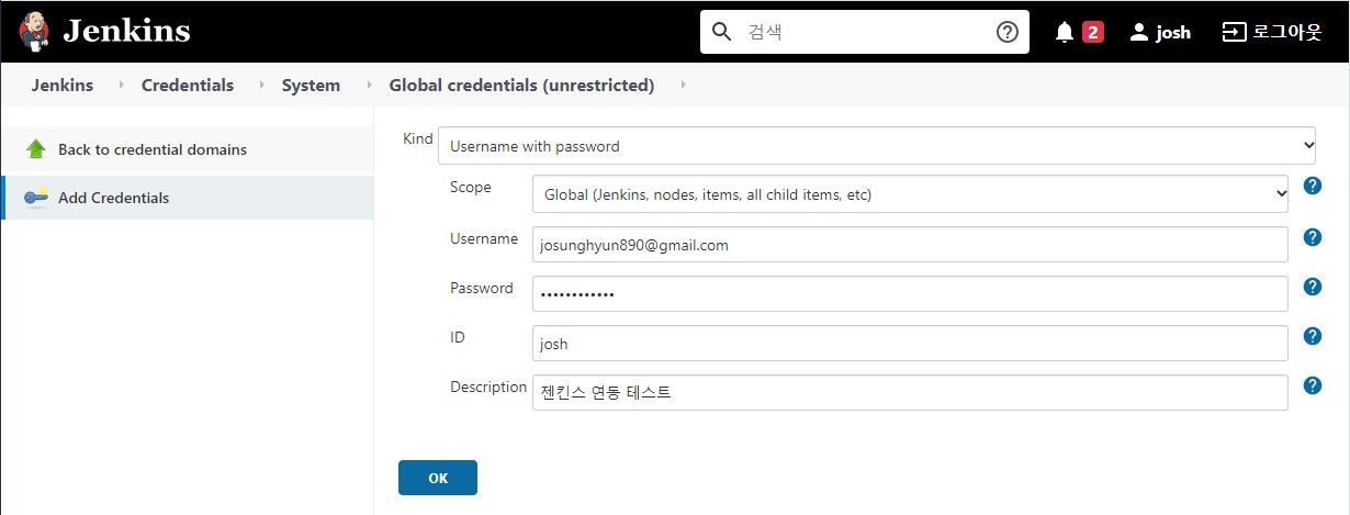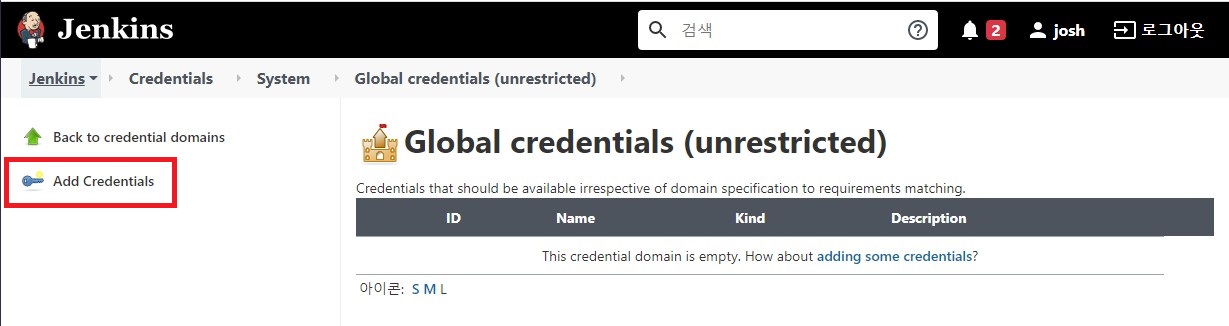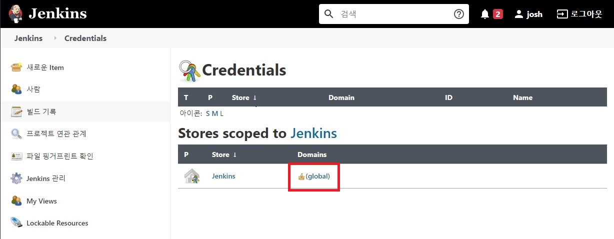 Jenkins 관리 > Manage Credentials