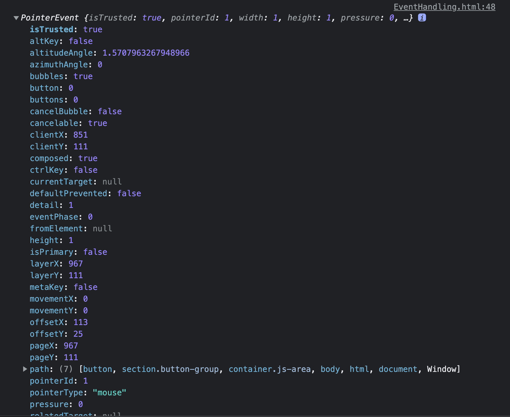 콘솔로그로 이벤트를 찍어보면 아래와 같다.